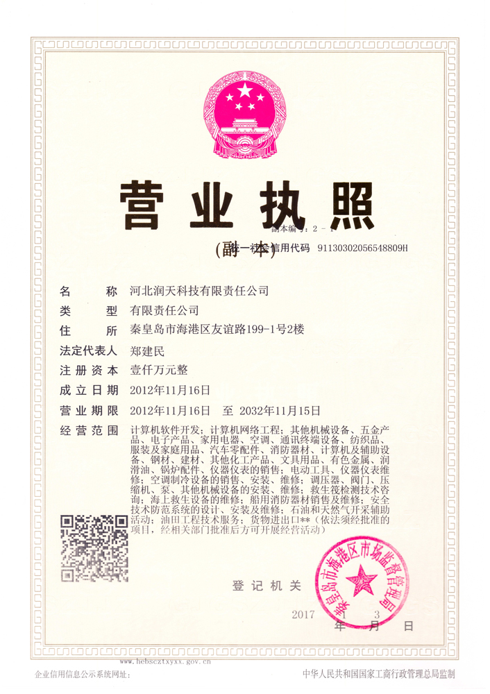 河北潤天科技有限責(zé)任公司始于2000年成立,公司以工業(yè)、應(yīng)急救援產(chǎn)品貿(mào)易為基礎(chǔ),主營安全設(shè)備、安全裝備、儀器儀表的銷售、維修及檢驗(yàn)檢測(cè);公司通過了CMA、CNAS實(shí)驗(yàn)室認(rèn)證及特種設(shè)備檢驗(yàn)檢測(cè)機(jī)構(gòu)核準(zhǔn)以...[更多]